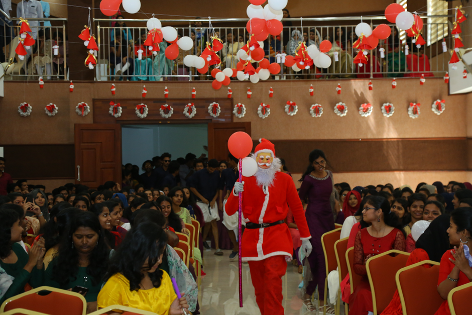Christmas is an annual festival commemorating the birth of Jesus Christ. It is a cultural festivity that entails a lot of preparations. Christmas is a season which fills our hearts with love and life with laughter. Preparations for Christmas starts early in Nirmala College of Pharmacy. At the start of December an advent tree/ Christmas tree would be set up at the reception, marking the start of our celebrations. It is also that time of the year that Nirmala sees talents of many of its wards performing enthusiastically in a number of competitions like Crib making, Carol song, Treasure hunts etc. Students from all batches come up with variety of dance performances, skits and songs to give their audience a mesmerizing Christmas experience.